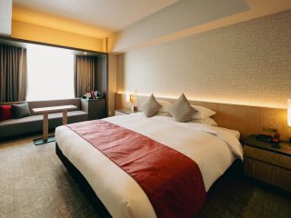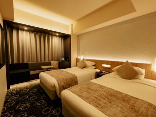 客室は、ナチュラルな木目とオークグレーを基調とし、 北海道らしい雪の結晶をあしらった落ち着きのあるデザイン。 客室標準面積21~28㎡のゆったりした空間でお過ごしいただけます。