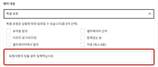 • 예약의 상세란(이하 빨간색 테두리)에는 반드시 소속처 호텔명을 기입해 주십시오.