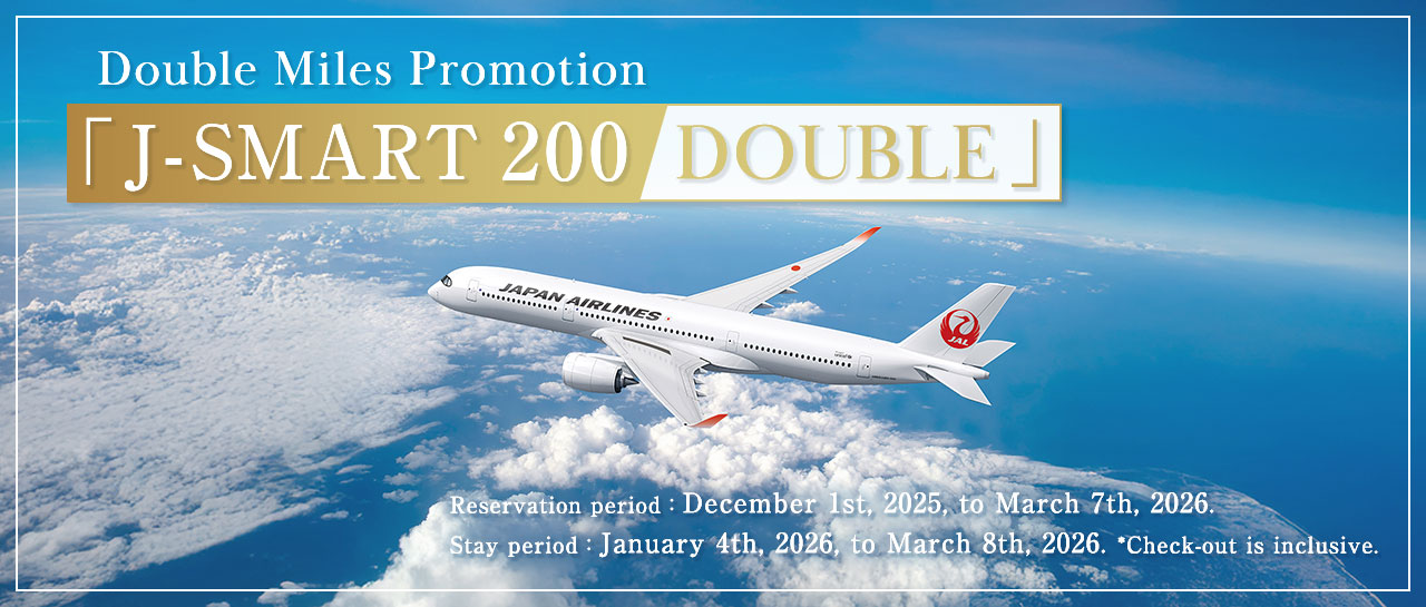 Reserve through our official website to earn both JAL miles and One Harmony Points. Please book a『J-SMART 200 DOUBLE』plan from the hotel list below.